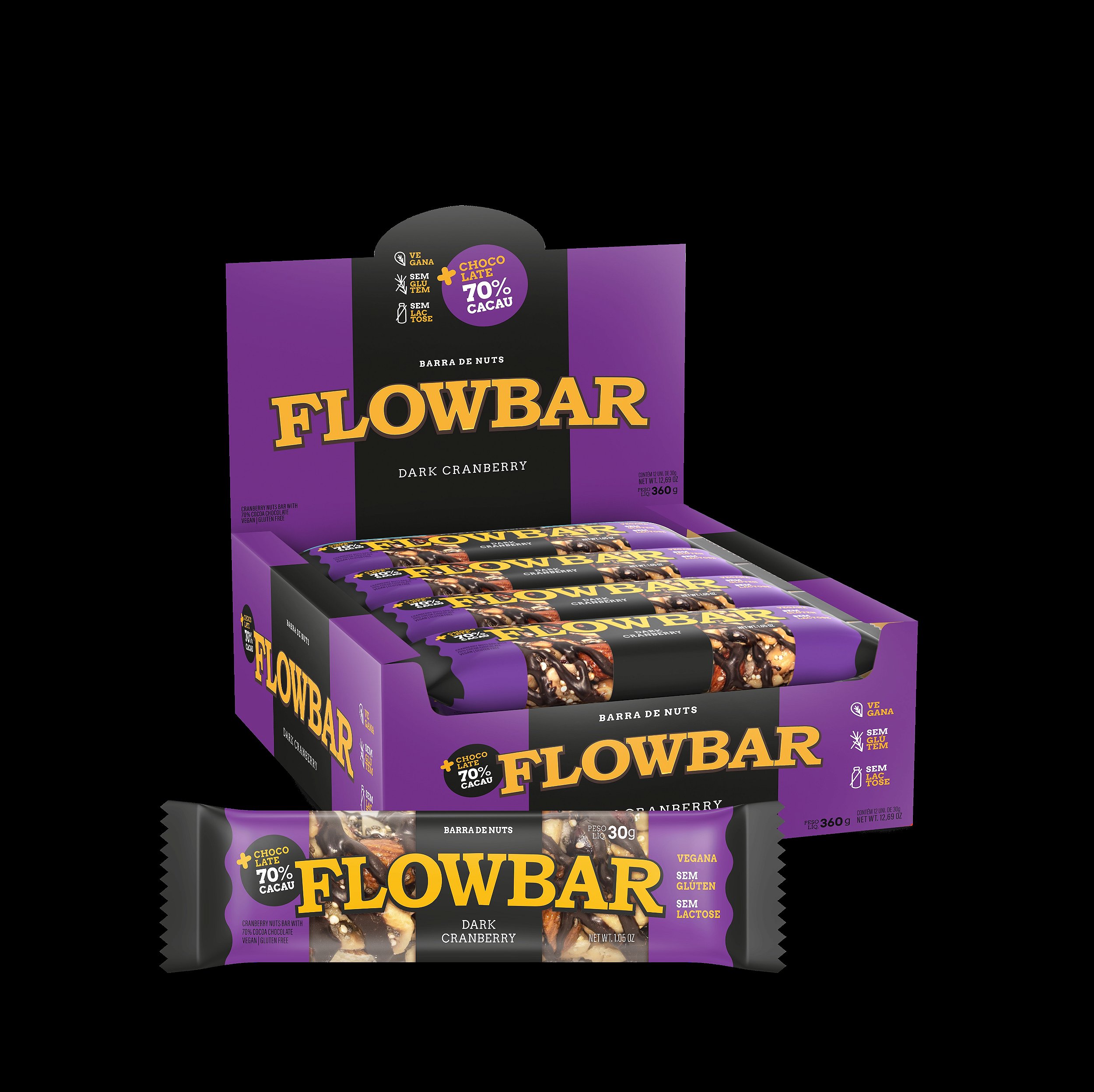 Ingredientes: Amendoim sem pele, chocolate 70% (massa de cacau, açúcar, manteiga de cacau, emulsificante: lecitina de girassol, aromatizante natural), polidextrose, amêndoa crua, cranberry, flocos de arroz, chia, lecitina de girassol, quinoa em grão, stevia, óleo de girassol, conservante (ácido cítrico) e antioxidante (extrato natural de alecrim). NÃO CONTÉM GLÚTEN. “ALÉRGICOS: CONTÉM AMENDOIM E AMÊNDOAS”. NÃO CONTÉM LACTOSE.